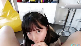Hungry horny Chinese MILF uses her mouth like a dick polisher